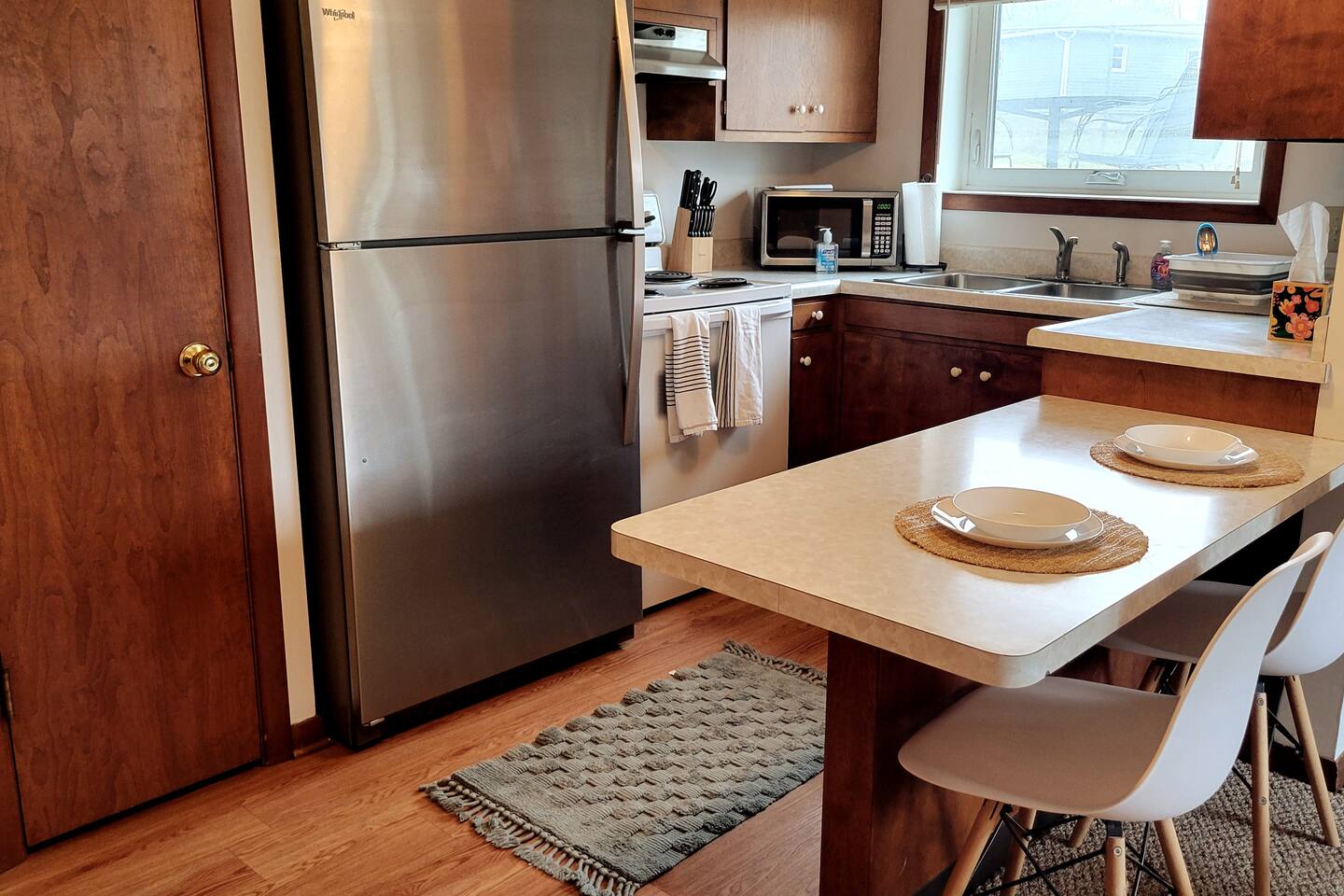 Guests have private access to the apartment, yard, laundry, and main entrance are shared with the upstairs unit.