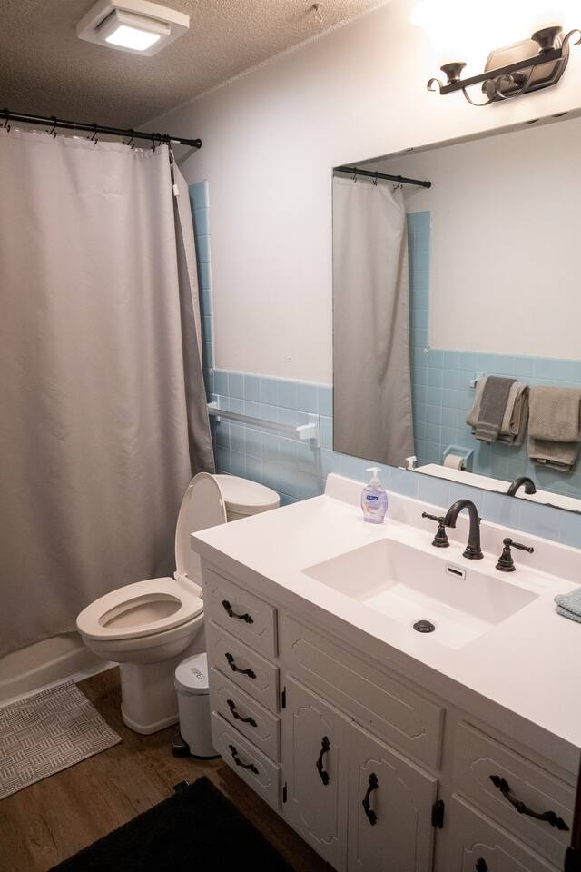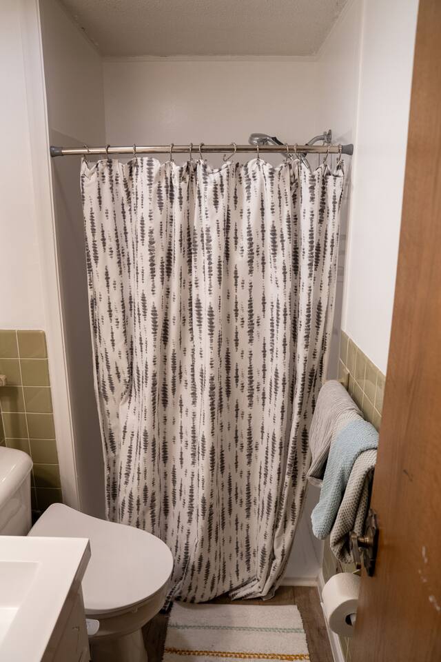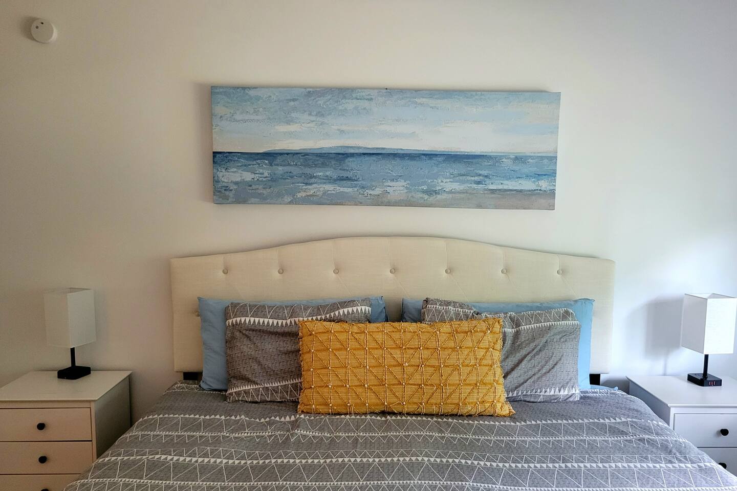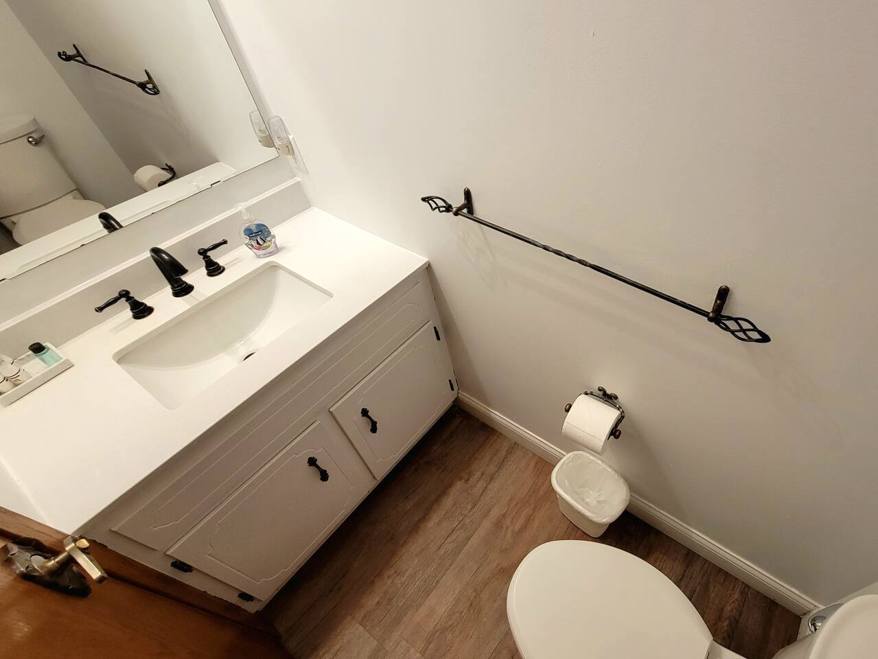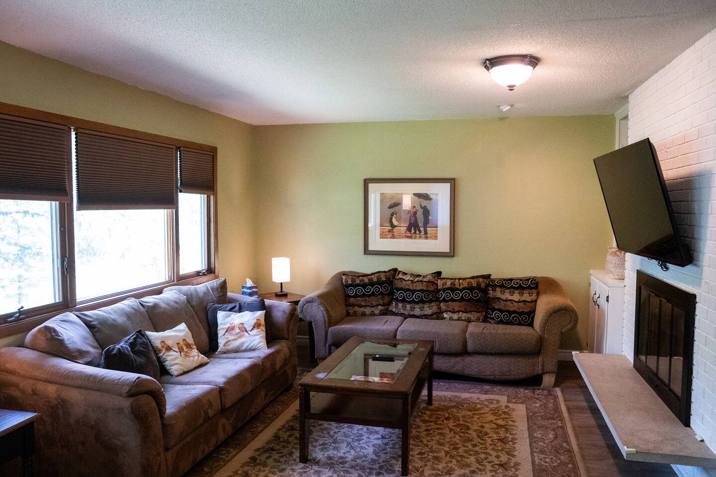 The main floor of this home has a Bedroom with Queen Sized Bed and half bath, along with living room, kitchen & dining room. There is no full bath on the main floor. Downstairs has a main bedroom with king bed and en suite bathroom attached with tub/shower. Additionally there are 2 other bedrooms with queen beds, a bathroom with shower, and free laundry facilities. There is an attached garage with house access as well.