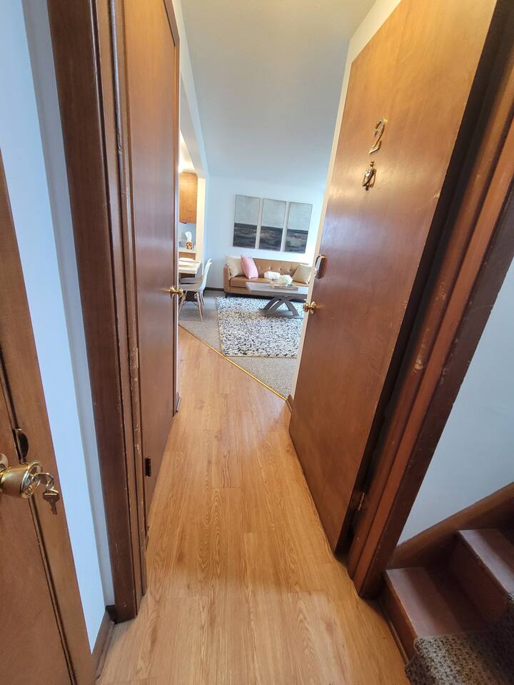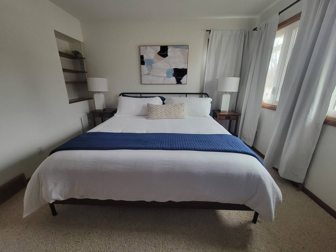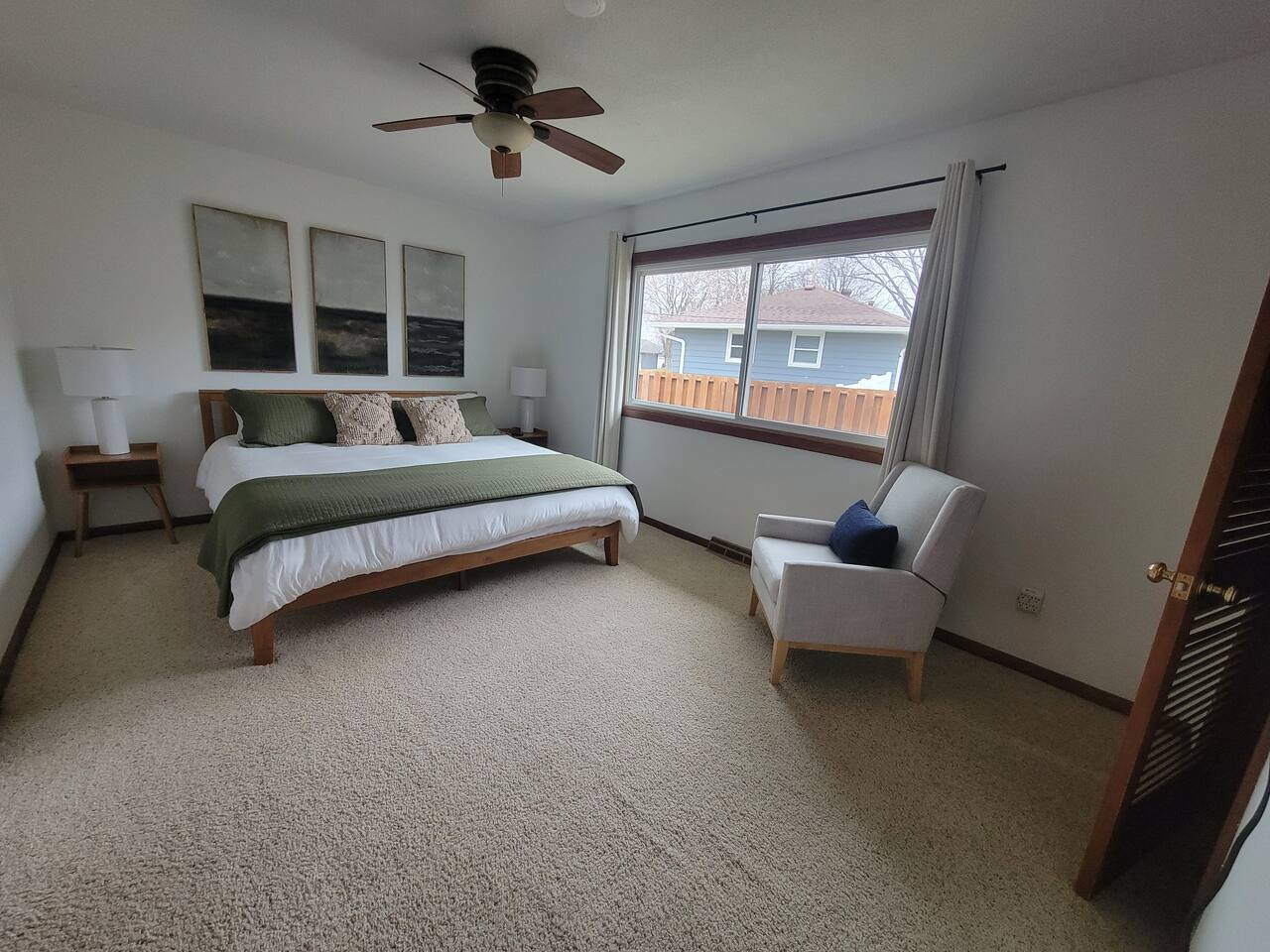 This home is private access to two apartments in a duplex. You will have private access to both apartments with no other tenants on site. This home consists of an upstairs apartment with 2 bedrooms and 1.5 bathrooms, full kitchen, dining area, and living room. There is a fenced yard attached to the upstairs apt. The downstairs apartment is one bedroom, 1 bathroom, kitchen, & Living Room with futon. There is an attached garage that allows for access to the downstairs apartment with no stairs.
