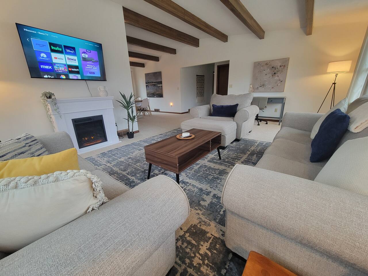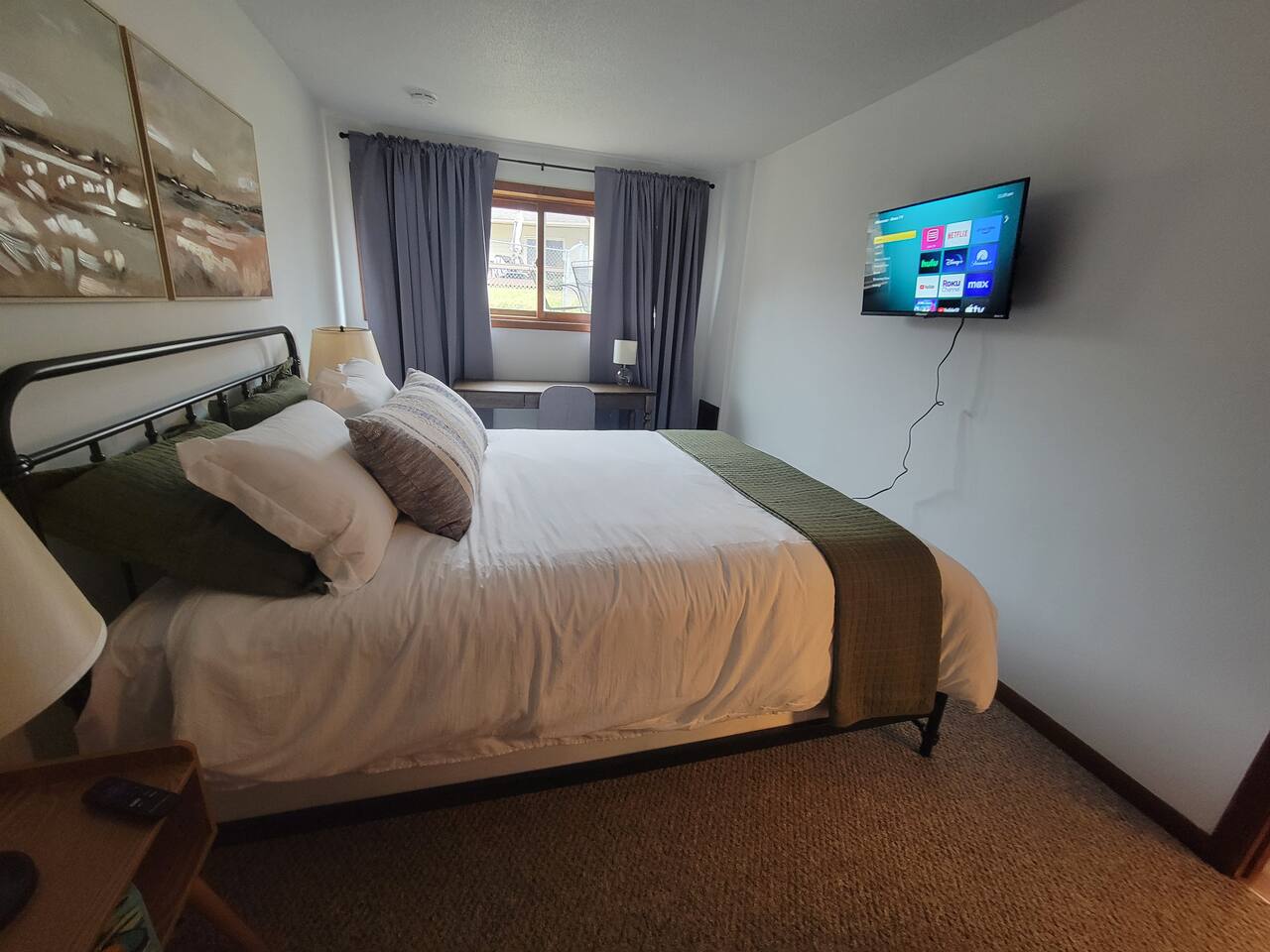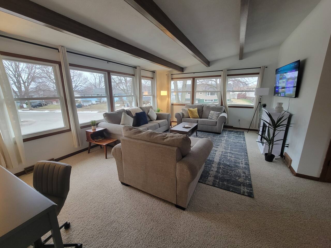 This home is private access to two apartments in a duplex. You will have private access to both apartments with no other tenants on site. This home consists of an upstairs apartment with 2 bedrooms and 1.5 bathrooms, full kitchen, dining area, and living room. There is a fenced yard attached to the upstairs apt. The downstairs apartment is one bedroom, 1 bathroom, kitchen, & Living Room with futon. There is an attached garage that allows for access to the downstairs apartment with no stairs.